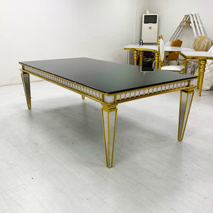 The dining table is made of stainless steel frame, which can be made of gold or silver. The desktop is usually white glass, which can also be made into transparent glass or mirror glass. Neat, bright and beautiful. It is very suitable for you to use when entertaining guests.(Lightweight ballroom chair for weddings, banquet halls, restaurants, and rental companies)