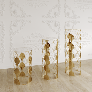 3 Pieces Stainless Steel Display Plinths Set - Silver
