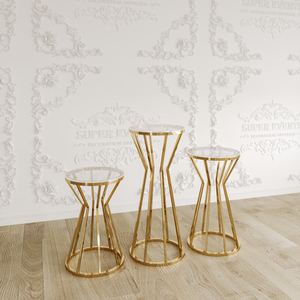 3 Pieces Stainless Steel Display Plinths Set - Gold