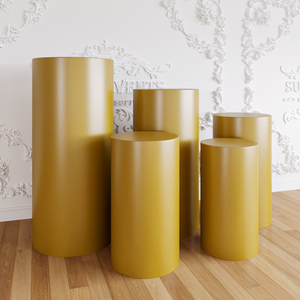White Metal Cylinder Round Plinths Set - 5 Pieces