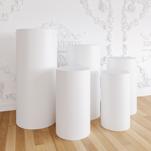 Silver Metal Cylinder Round Plinths Set - 5 Pieces